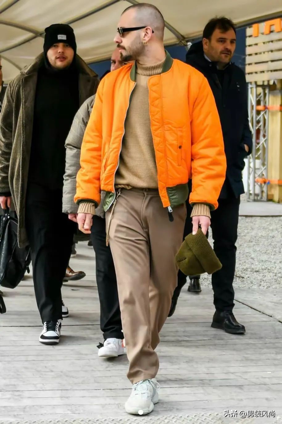 颜色的搭配同样重要,与飞行夹克相近或互补的鞋子能让你的造型更加完美。
