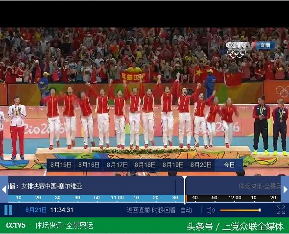 2016年里约奥运会女子排球颁奖典礼,中国女排姑娘站上冠军领奖台!中国女排获得里约奥运女排冠军!