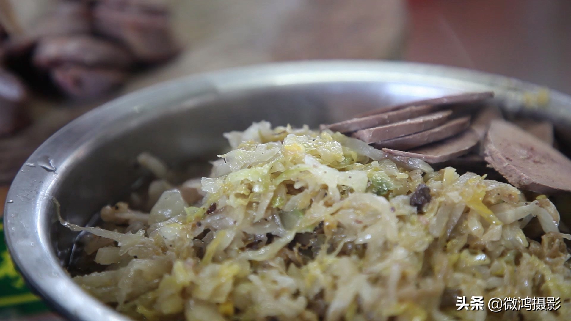 杀猪菜作为东北最著名的土菜,用大兴安岭本地的养殖的笨猪,新鲜的猪血灌的血肠,烀好的猪肉、猪肝、苦肠、新腌制好的酸菜,放在一起炖,美美的吃上一顿,既可以抵挡冬日的严寒,也可以享受新鲜食材带来的舌尖上的享受。