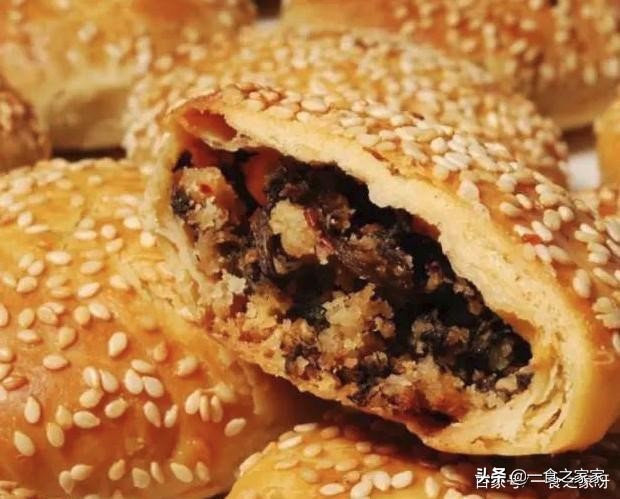 赤岸酥饼,形似蟹壳,色泽艳丽,两面金黄,分层如纸,咸鲜酥脆。轻咬一口,外酥内脆并带着柔软, 烤熟的芝麻香味醇厚,油而不腻,松而不散。再加上梅干菜混合肥膘肉烤制后产生的特别香味, 说起来就让人直咽口水。