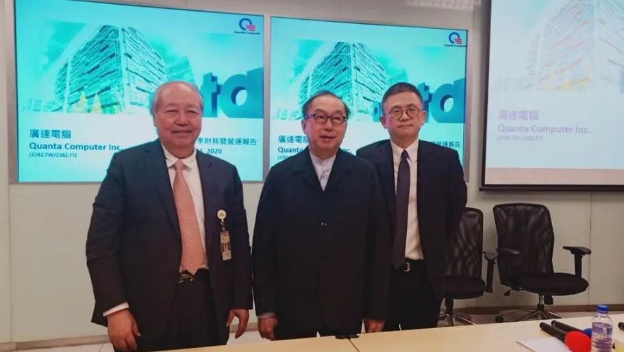 林百里(中)、梁次震(左)和广达财务长杨俊烈(右)