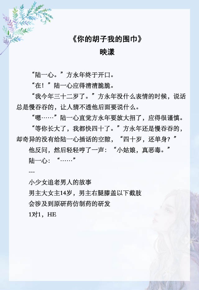 「推文」五本残疾男主文,《你的胡子我的围巾》,治愈系小甜饼