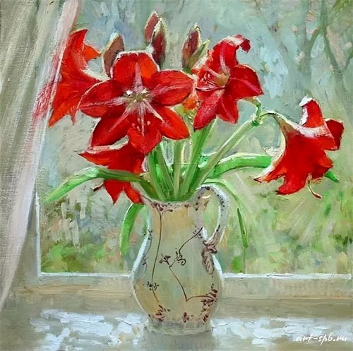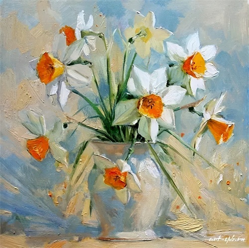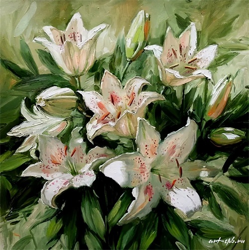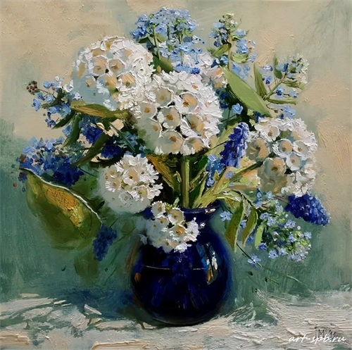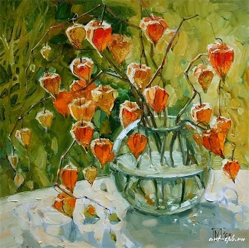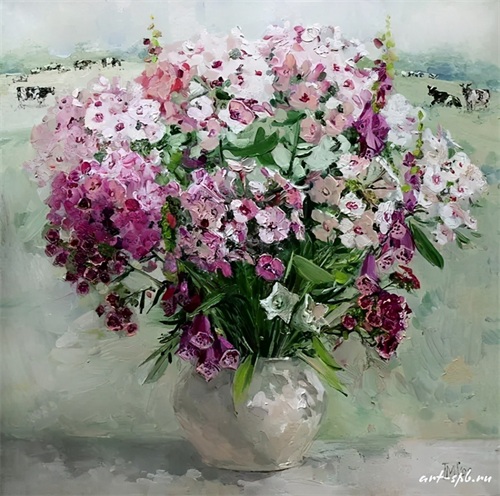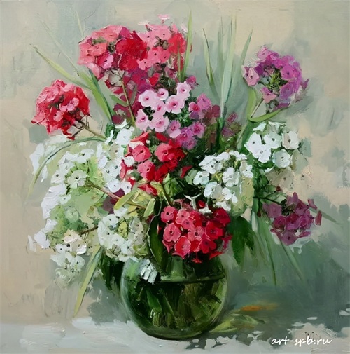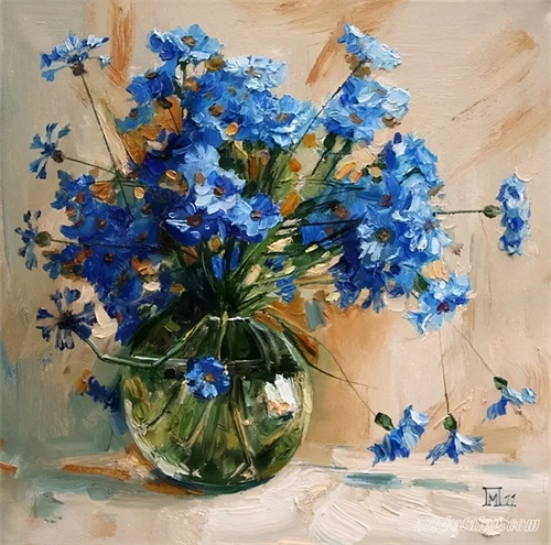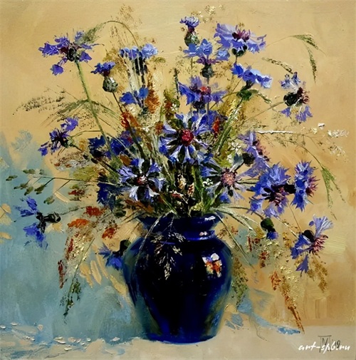 今天分享一组俄罗斯女画家的油画花卉作品。大多都是插在花瓶中的一束束鲜艳盛放的花朵,错落有致,无论是色彩还是花朵种类,都搭配得很有观赏性。