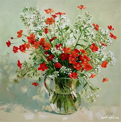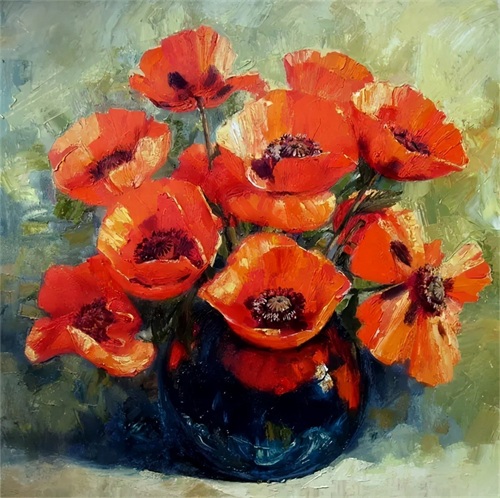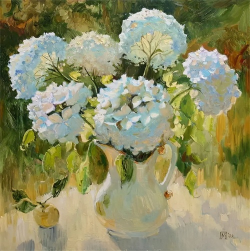 火红盛放的虞美人、清新的绣球花、可爱的灯笼果、充满活力的小雏菊......画家画笔下的每一束花都画出了各自的风格,有着不同的美。