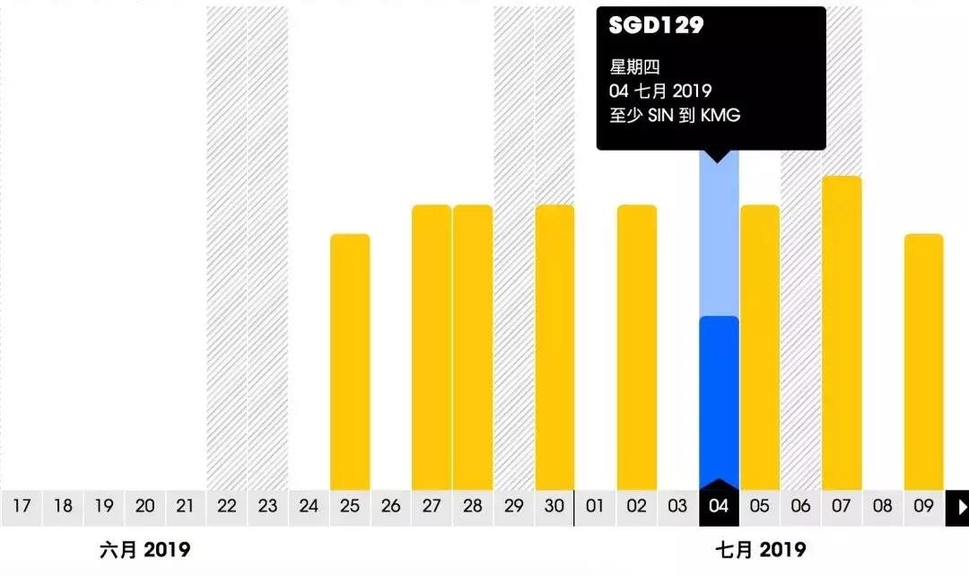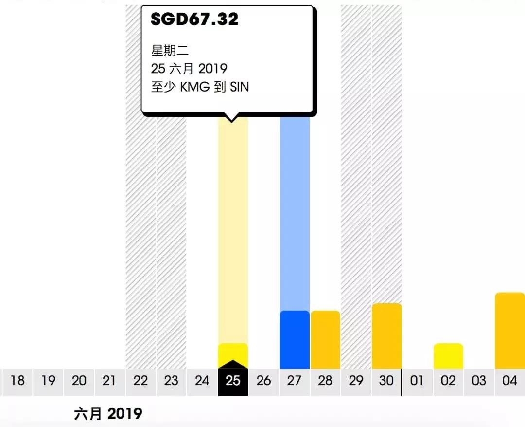 新加坡飞昆明的航班从6月25日开始,最便宜的机票在7月4日: