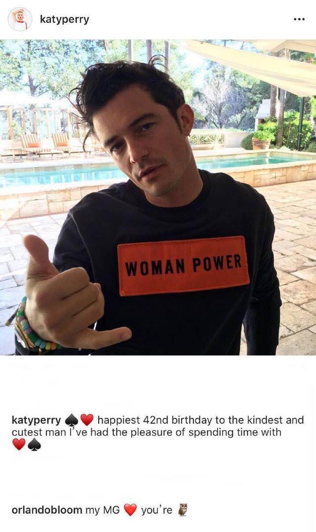 凯蒂·佩里曾在2009年与演员拉塞尔·布兰德约会,2010年10月两人结婚,之后不到两年就离婚了。曾出演《指环王》三部曲、《加勒比海盗》和《霍比特人》的奥兰多·布鲁姆曾与超模米兰达·可儿结婚,育有一子。这对夫妇于2013年10月离婚。“水果姐”与“精灵王子”从2016年开始断断续续地约会,如今终于享受了一个史诗般的甜蜜情人节。