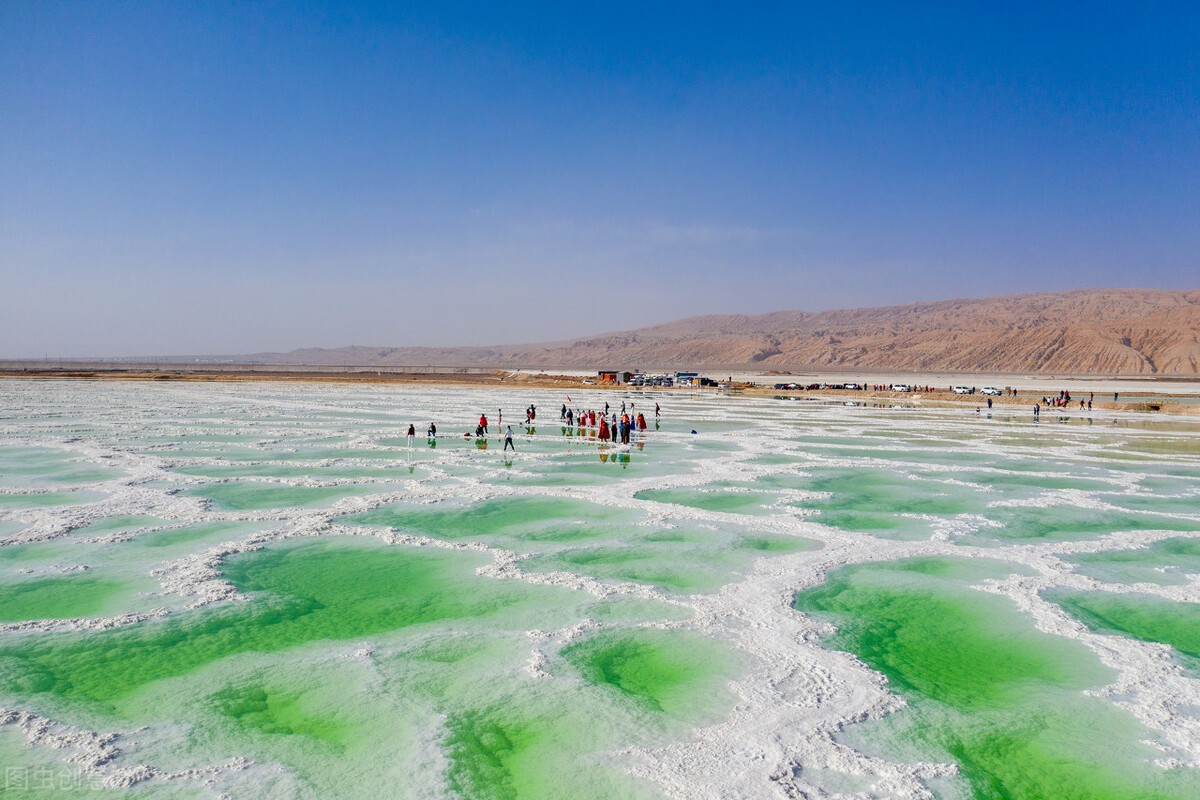 大柴旦翡翠湖位于青海省海西蒙古族藏族自治州境内,形态迥异、深浅不一的盐池宛如一块块晶莹剔透的“翡翠”。