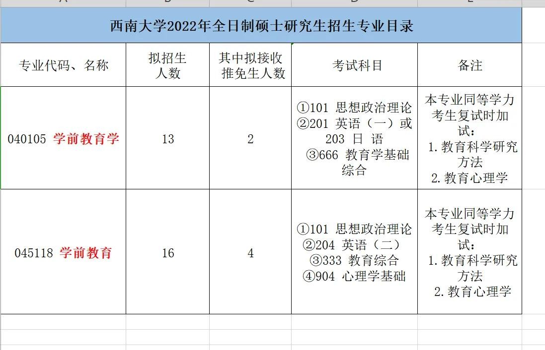 大家好,今天给大家介绍下:西南大学教育学部---学前教育专业。西南大学教育学部始建于1906年,组建于2011年,是西南大学办学历史悠久的研究型学部。1950年10月,四川省立教育学院教育系、国立女子师范学院教育系合组为西南师范学院教育系。1951年至1953年,又先后并入了四川大学教育系和教育专修科、重庆大学教育系、相辉学院教育系、川东教育学院教育系和公民训育系、昆明师范学院教育系、贵阳师范学院教育系、四川医学院营养保育系等高校的教育类专业。1993年成立教育科学学院,2003年改名教育学院。2011年,学校将西南大学教育学院、教育科学研究所、基础教育研究中心、教育部西南基础教育课程研究中心、教师教育管理办公室、高等教育研究所和培训学院的教学科研人员合并组建为西南大学教育学部,成为西南大学重点育造的研究型学部。学部现任党委书记王牧华教授,部长朱德全教授。西南大学 2022 年硕士研究生招生章程(部分内容)