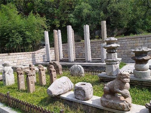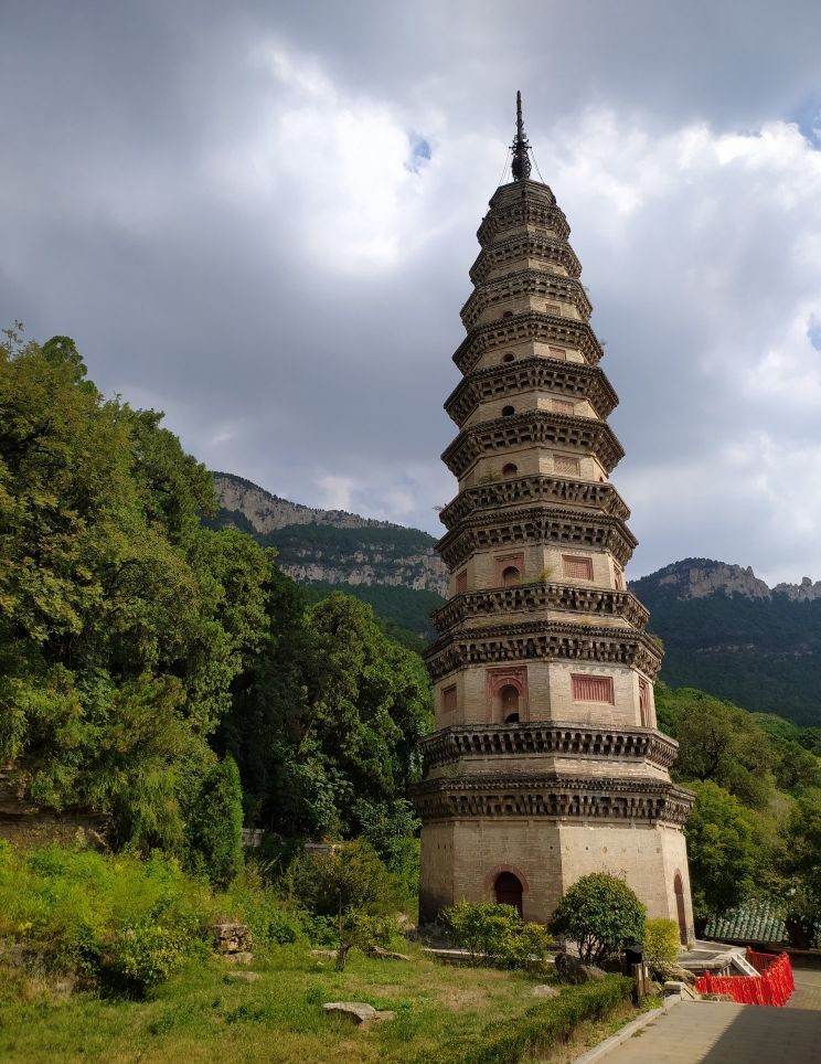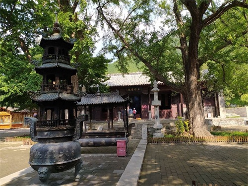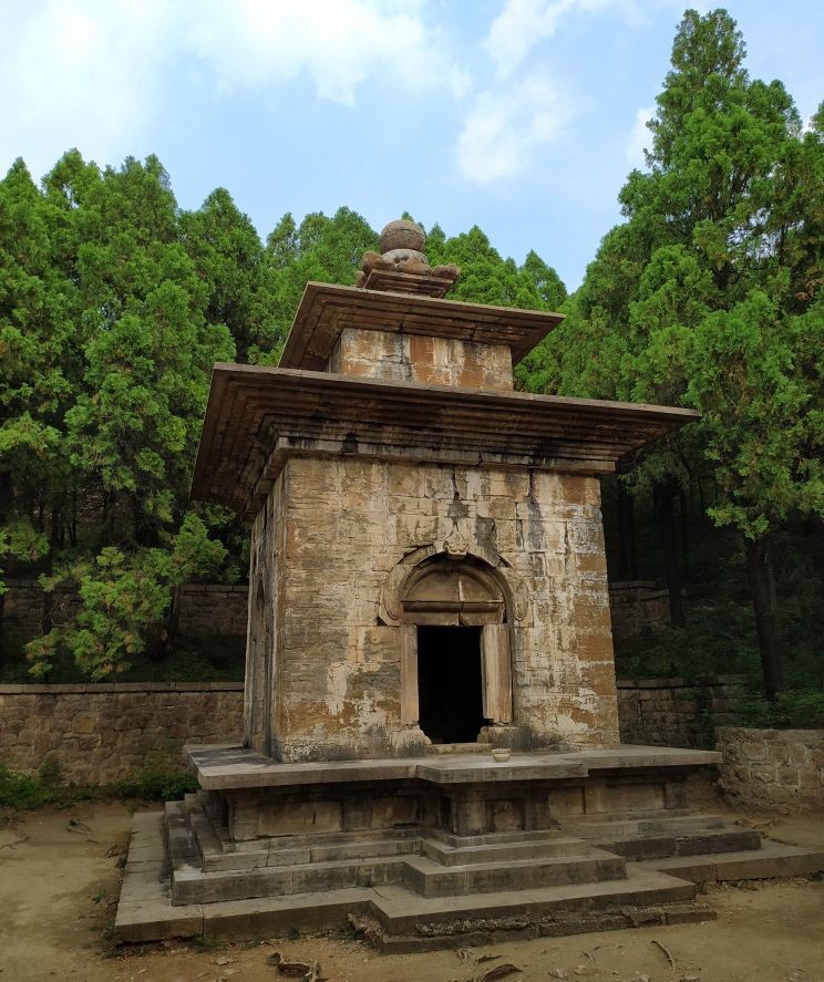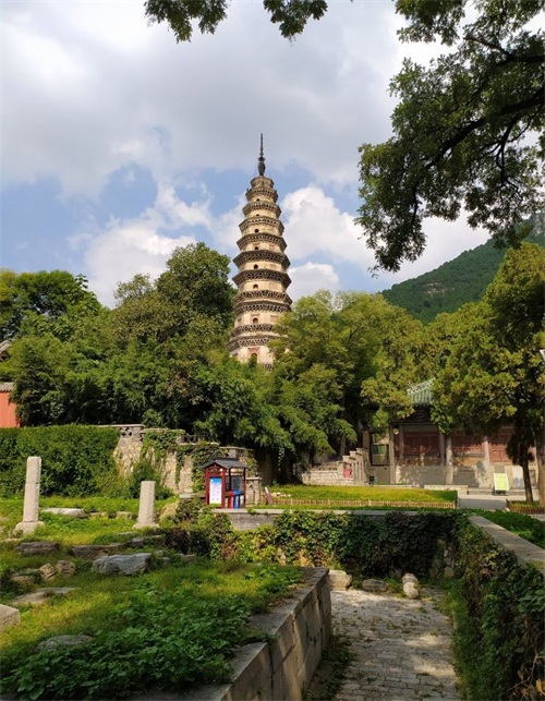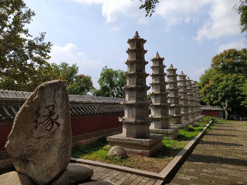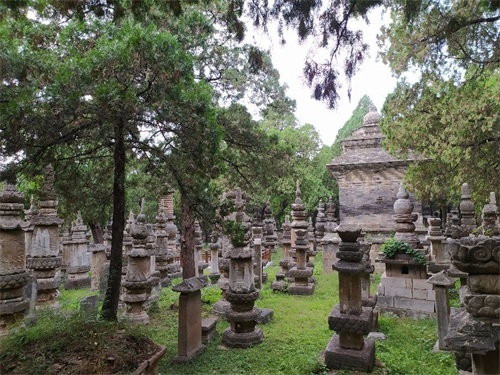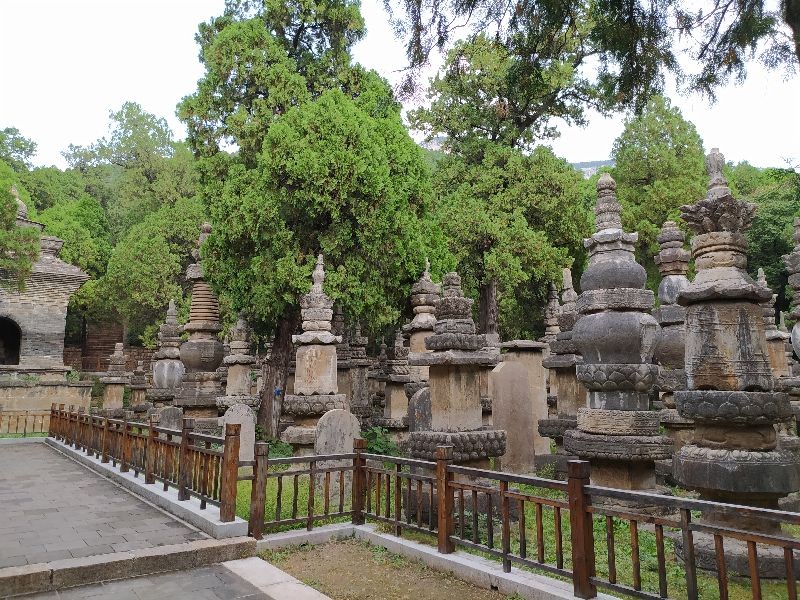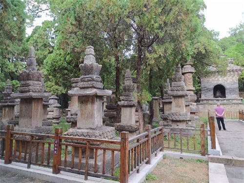 向左拐约一里多路,有墓塔林,寺内历代高僧葬身此处。塔林中现有北魏、唐、宋、金、元、明、清历代石质墓塔167座,墓志铭、石碑81通。