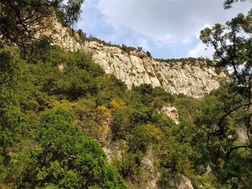到达山顶,看到悬崖峭壁和连绵青山,心情还是不错。