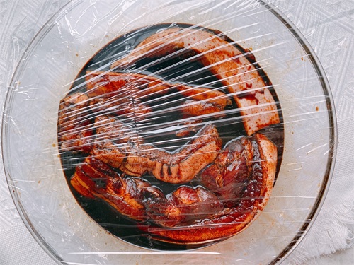 8、腌制过的酱油不要倒掉,还可以再使用一次,用来腌制五花肉、鸡腿、鸭腿等等都是可以的,重量也是大约3斤,这样重复利用会更节约;