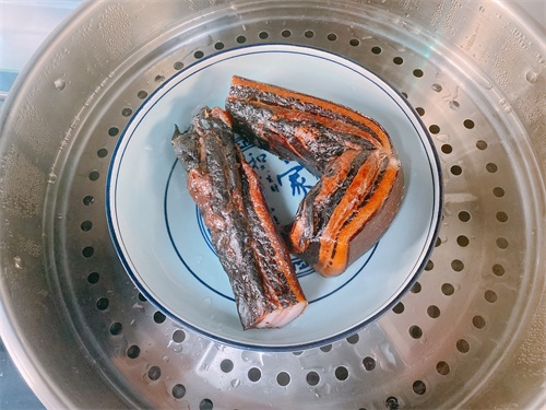 11、腌好的酱油肉,表面清洗干净,冷水上锅蒸,水开至少再蒸半小时,时间到,可以用筷子扎一下,感觉能扎透了,酱油肉就蒸熟了,出锅稍微晾凉;