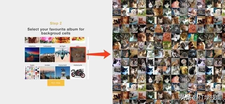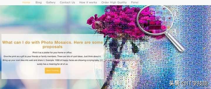 首先添加一幅本地或者网络照片,上传之后就可以在“画廊”里选择打马赛克的“元素”,19个类别一定有自己喜欢的。选择好之后就可以“Create Your Mosaic”了。
