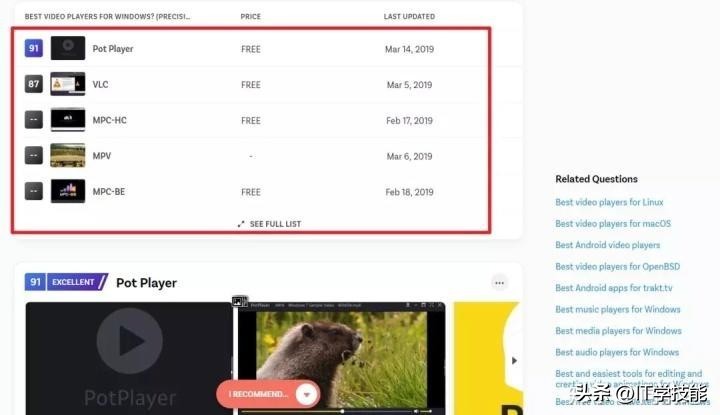 最好用的windows播放器就会出现,里面有排名和评价,还有这个产品的官网,防止你找不到官网,下载捆绑软件。