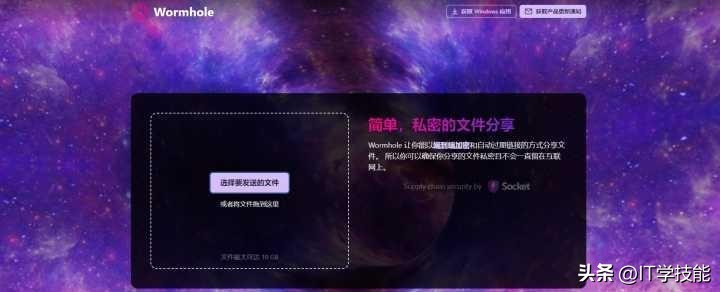 个没有任何限制的文件传输网站,打开就可以选择上传需要临时保存的文件或文件夹,一次可以免费上传10GB以内的大小文件。