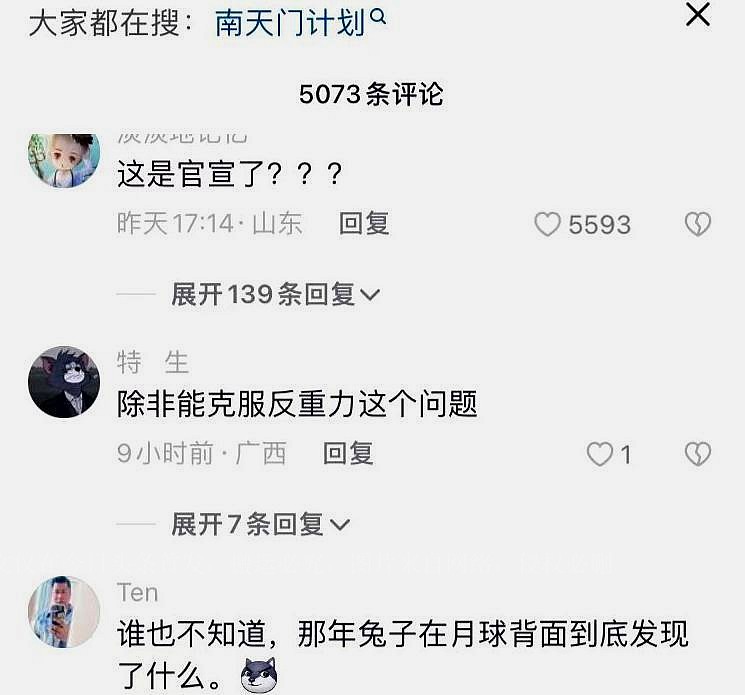 消息一出,掀起网友们的热议,大家纷纷发表着不同的看法,传说中的“南天门计划”似乎正在向现实靠拢。