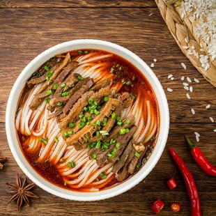 常德米粉历史悠久,口味润滑且有弹性,加入卤肉、香菜、辣椒等拌在一起,香辣可口,肉味浓郁。