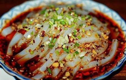 刮凉粉是湖南的传统风味名吃,在凉粉里加入麻油、辣椒、酱油、醋、蒜、盐、芝麻、花生碎等一起拌匀食用,香辣可口,在夏日食用,十分开胃解暑。