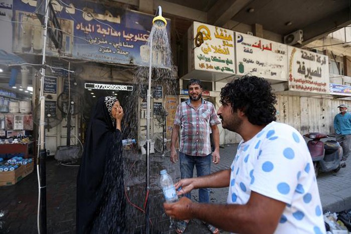 巴格达的夏季是异常炎热的,气温在40摄氏度都是很平常的,更热的情况下能达到50摄氏度,简直是酷暑难耐,在街头能看到行人用水龙头冲凉。