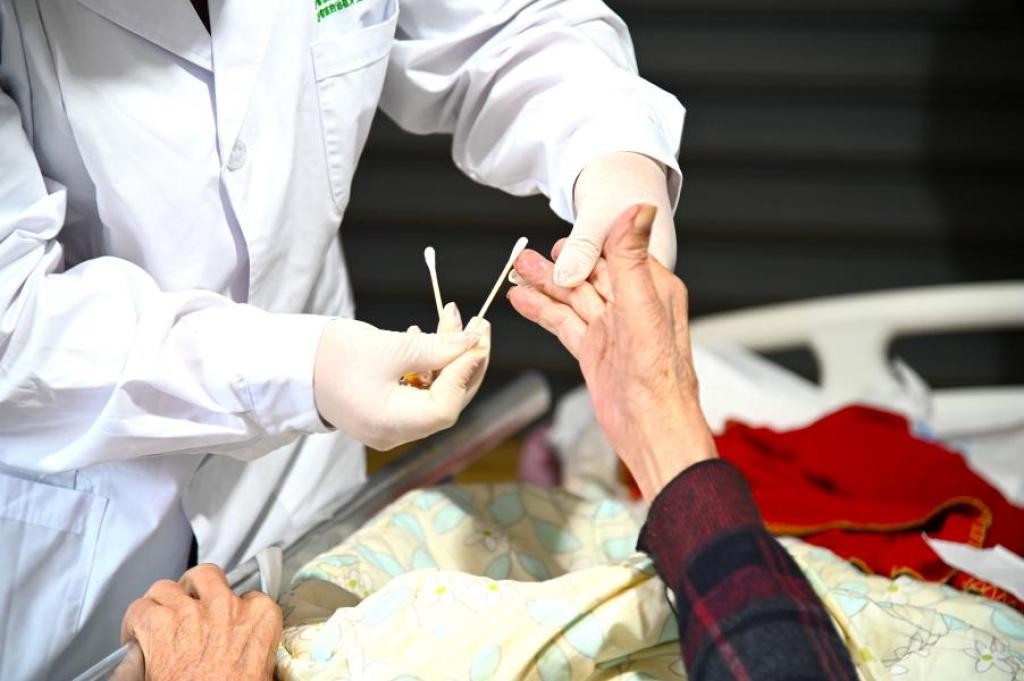 1月25日,白沙居卫生室村医王彩青入户为村民进行健康检查。王振雅 摄