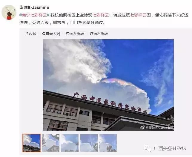 南宁罕见七彩祥云惊艳全国,转发有好运!