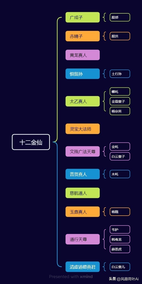 二代弟子有十二金仙,也叫十二上仙,具体见下图: