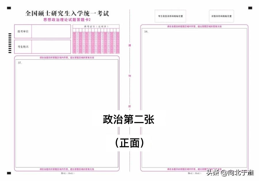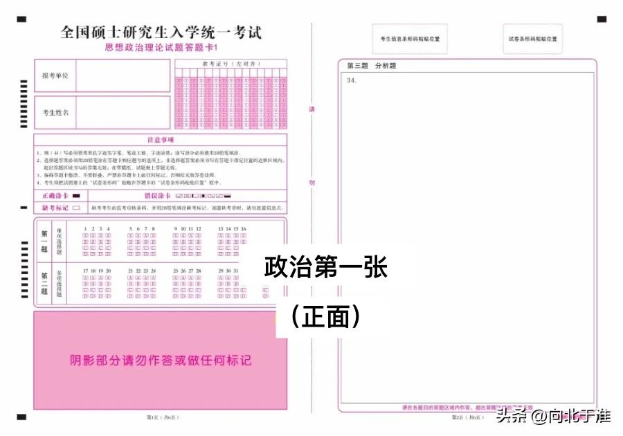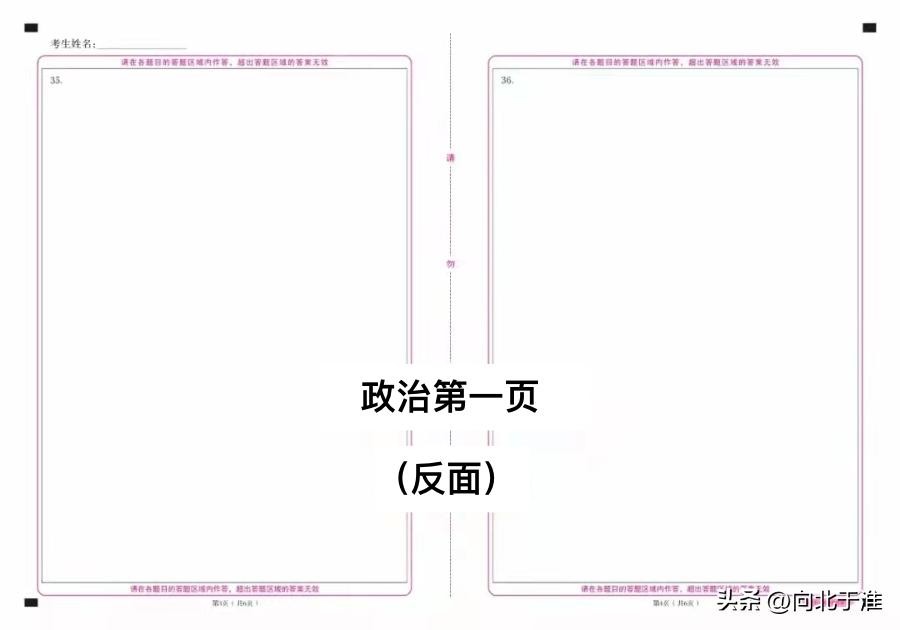 政治答题卡有2张纸(每一面分成2小页,共6页)