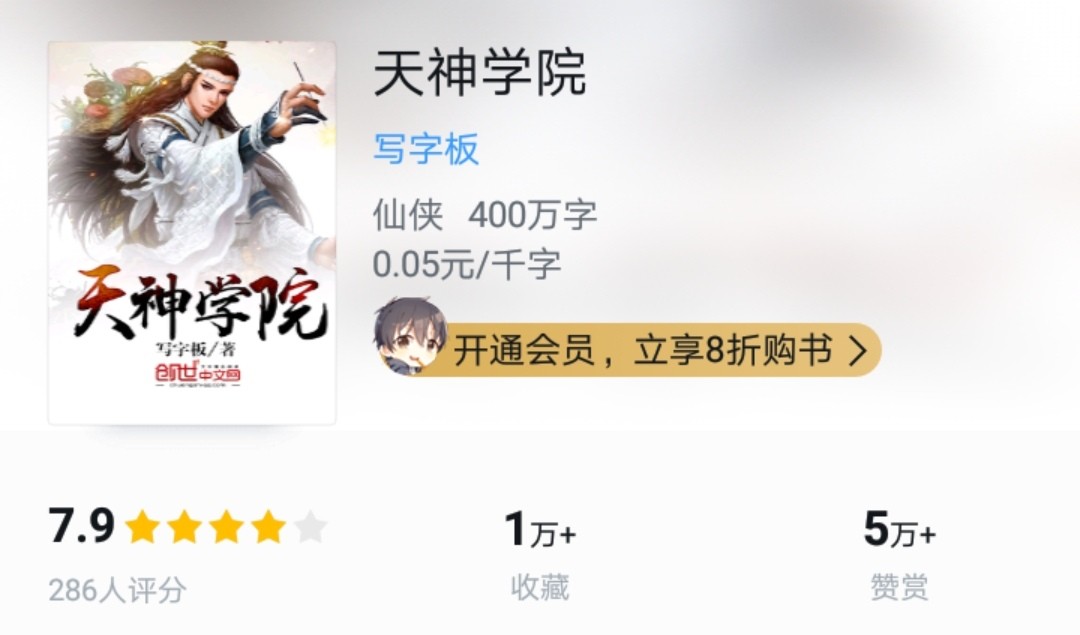 另外由于这本小说成绩一般,写字板这几年的人气流失的厉害。不单独说说的话,可能很多人已经记不起来这位大神曾经的辉煌了。而从他的发展轨迹来说,这位也算是出道即巅峰的代表之一了。毕竟张三丰之后,确实没有成绩爆火的作品。