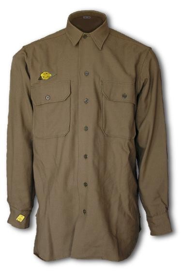 长袖衬衫有两个贴袋,没有肩带,材质为卡其色羊毛绒或棉布,颜色为OD 32。两种材质的衬衫都可以穿在常服内,但不穿常服时,棉衬衫不能作为外衣和羊毛长裤搭配穿着。最初衬衫设计是立领,就像普通正装衬衫一样。1941年衬衫经过重新设计,野战时不系领带衣领也能平放。1944年衬衫和长裤的颜色改为OD 33。