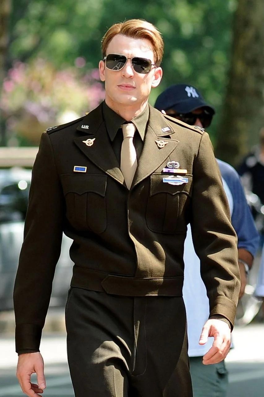 美国队长扮演者克里斯·埃文斯就身穿一件艾森豪威尔夹克