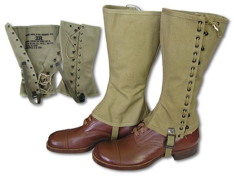 这三种类型军靴都要搭配M1938橄榄色下(车)帆布绑腿(M1938 olive drab dismounted canvas leggings)。
