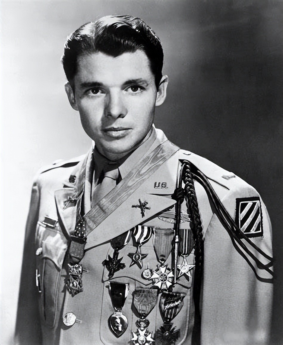 1948年身穿军官夏季常服,佩戴全部勋章的奥迪·墨菲(Audie Murphy)