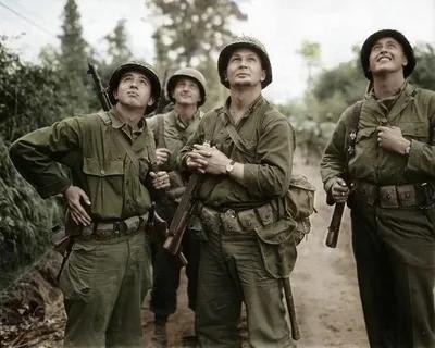 美国陆军在1941年参战时,除了某些单位穿特殊制服(伞兵和装甲兵等),几乎大部分美国士兵都身穿M1941野战夹克。不过在实战中,M1941野战夹克还是暴露了许多问题,比如夹克内衬保暖性差,轻薄外衣无法抵御潮湿天气和大风侵袭。外衣颜色会很快褪色,影响伪装效果。而且外衣材质会在阳光下反射,所以很多美国士兵反着穿,把橄榄色内衬穿在外面。