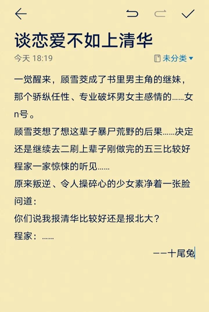 女主穿书,上辈子是学霸,穿成,额恶毒女n号,致力于破坏男女主感情,还是男主的继妹,顾雪茭想了想,决定去二刷五三,追什么男主,当什么女配,是五三不香了吗,这辈子唯一的纠结就是“我是上清华还是北大呢“。纯纯学霸文。像上清华好还是北大这种纠结的问题是十岁前年少轻狂的言论,但是不妨碍看一个学霸有这样的思考是吧,文中的研究文献知网可考究。