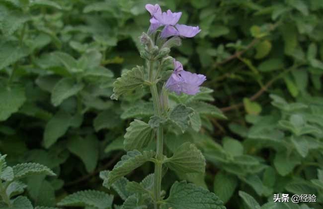 2、猫薄荷:猫薄荷茎直立,叶片卵状至三角状心形,基部叶有柄或近无桶,轮伞花序,小坚果三棱状卵圆形,花期6~8月,果期7~9月。