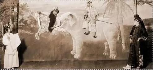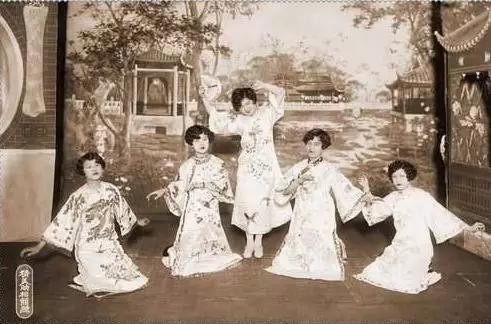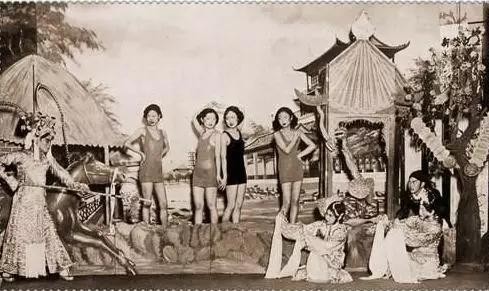 这一组民国时期的艳舞表演老照片。交谊舞在那个时代多少有些性色的成份。虽然有“露肉”的表演,但与古老戏服的对比已经产生了艺术性的视觉冲击。从舞台布景与演员的装束上看,演员们所表演的一是场那个时代的“现实剧”。