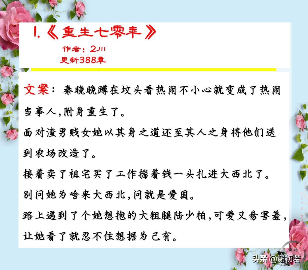 1.《重生七零年》(作者:2川)(更新388章)