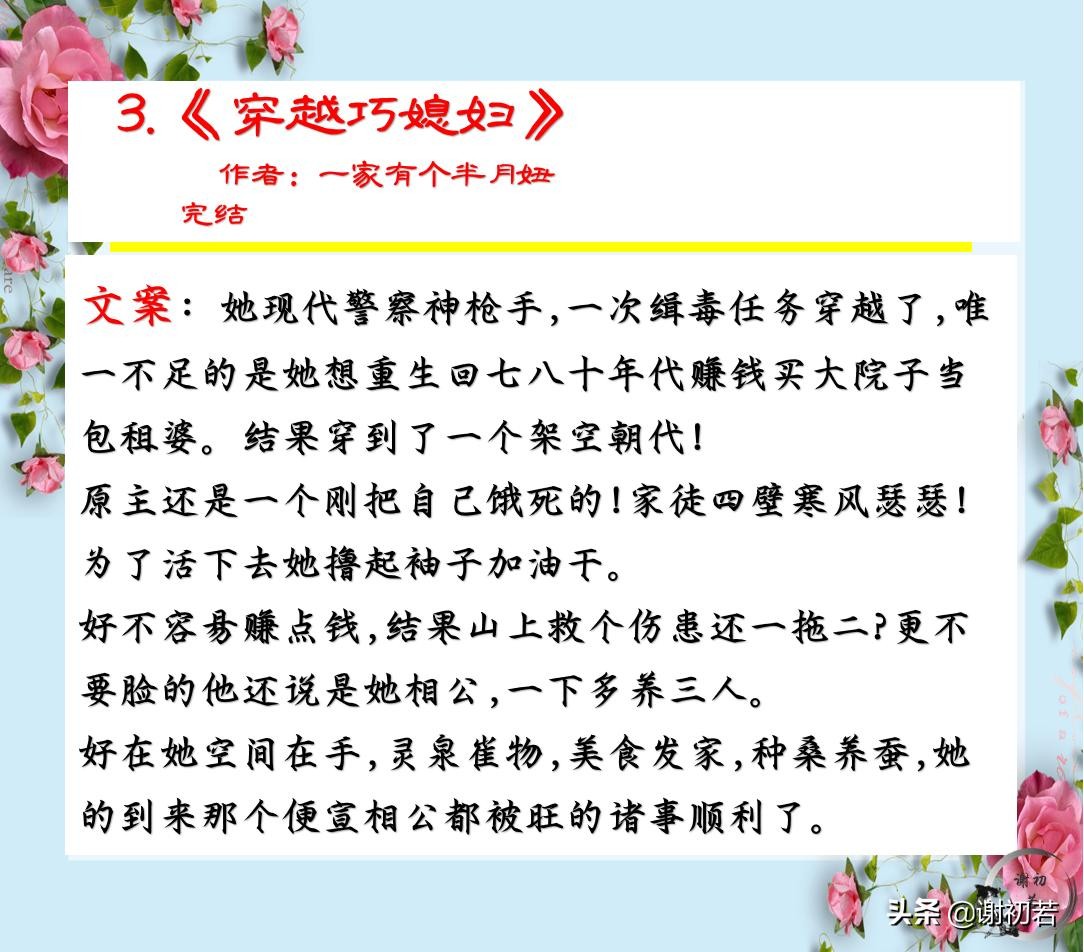 3.《穿越巧媳妇》(作者:一家有个半月妞)完结