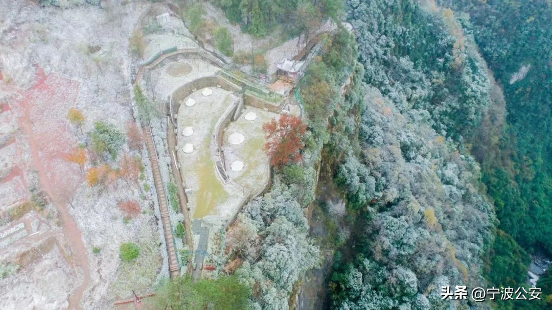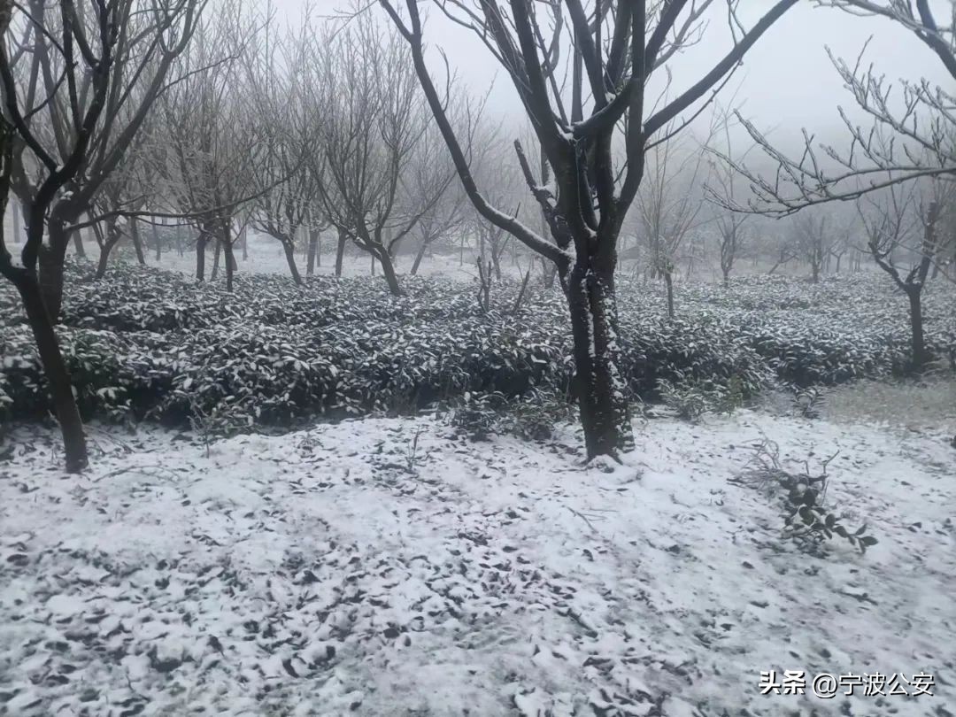 从昨天夜里起,雪花就开始飘落在宁波四明山区。到今天早上,宁波海曙、余姚、慈溪、奉化都已经下雪。