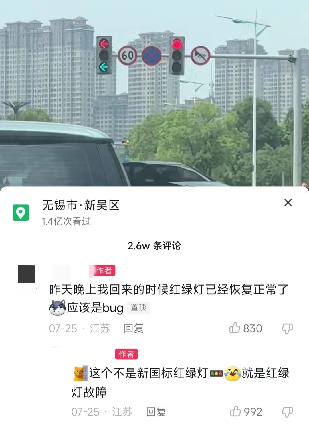 答:这是红绿灯故障,和“新国标红绿灯”没有关系。