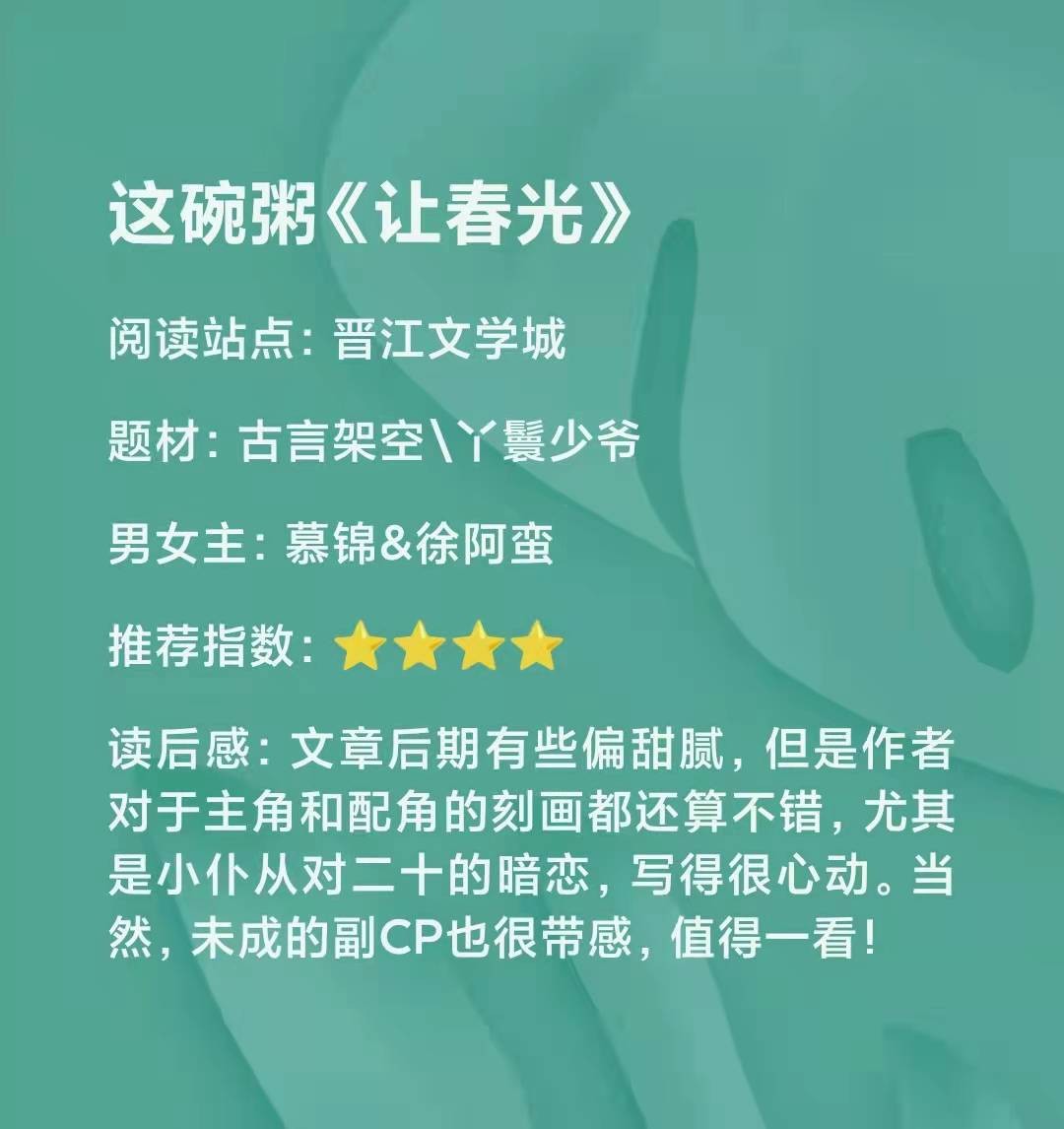 强取豪夺古言《让春光》:这碗粥作品,少爷配丫鬟浪子回头文