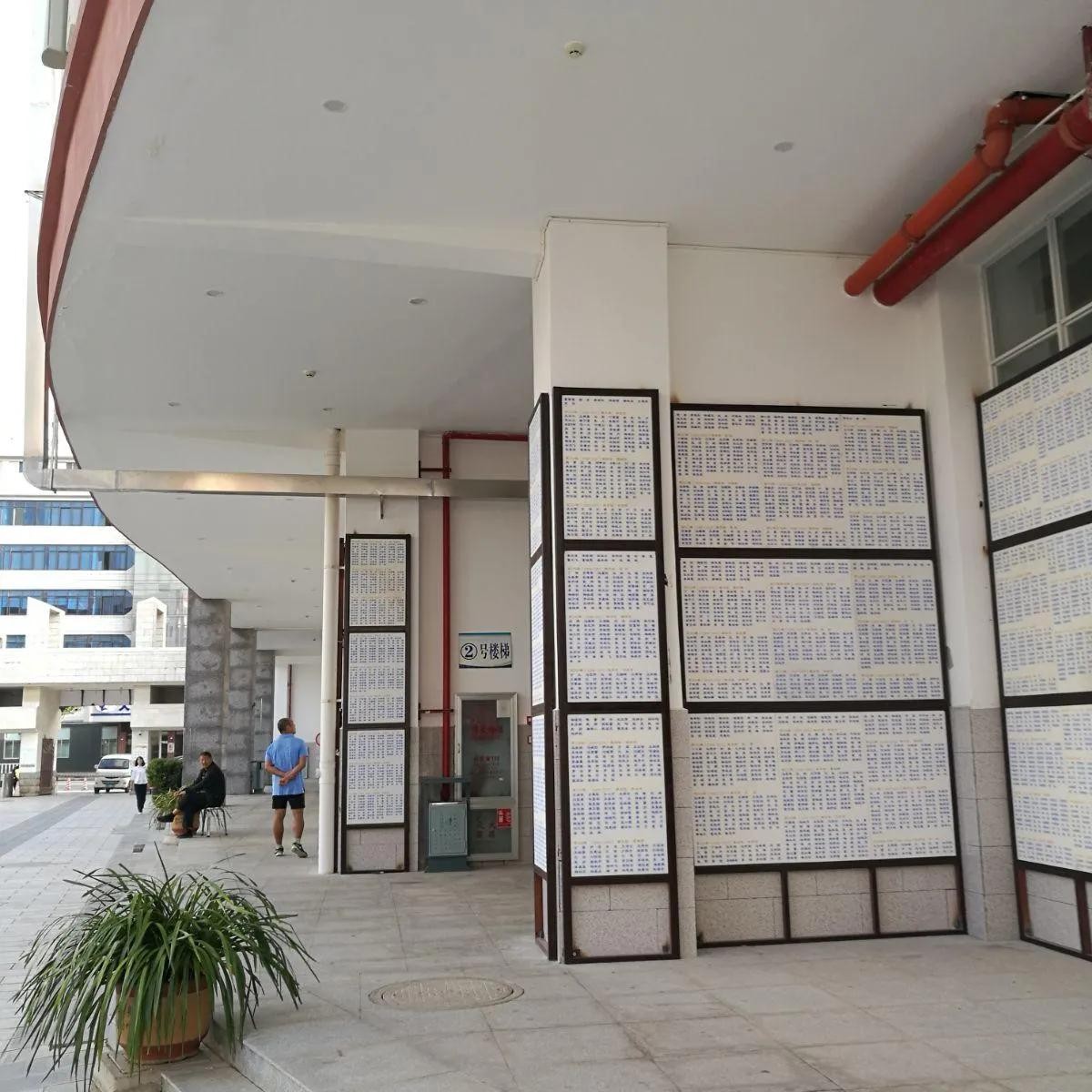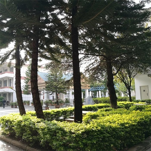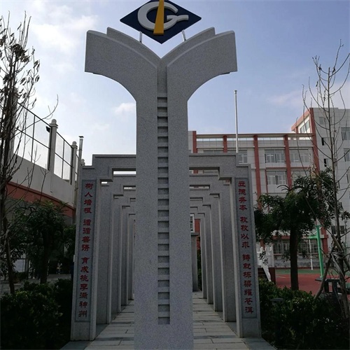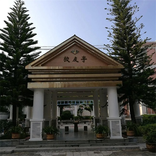 新建校区操场高楼处闹市秩序井然,校友亭前思源感恩回眸望激情涌动。