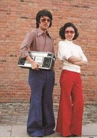 在上世纪80年代初放这首歌的标配是,小年轻们带着蛤蟆镜,穿着喇叭裤,手上拎着三洋的砖头式单卡录音机。一边把声音放到最大,一边摇头晃脑。