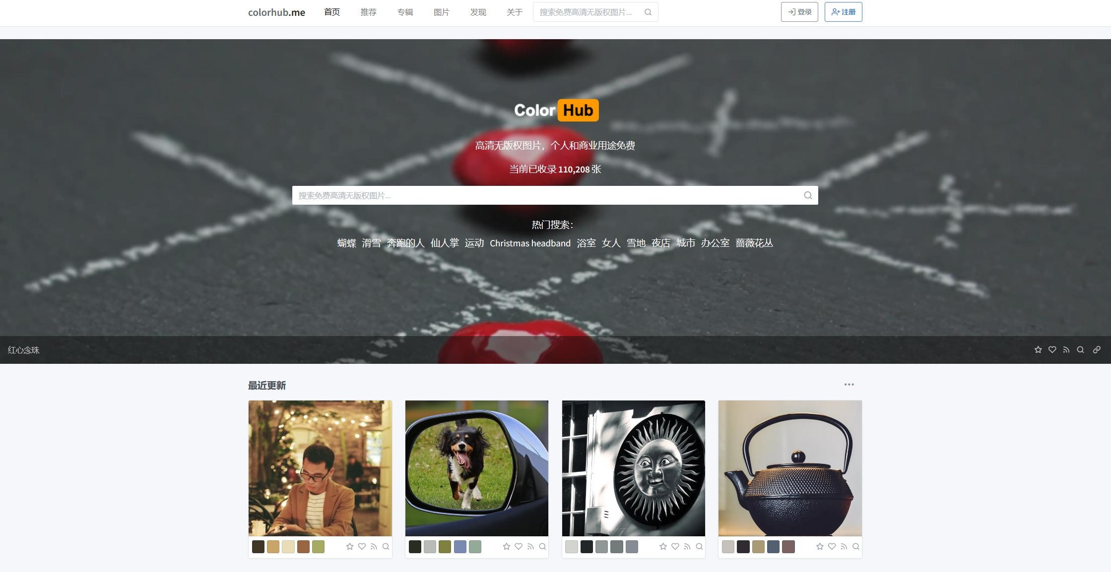 Colorhub是一个高清无版权的图片网站,除了可按中文关键词检索,还支持按颜色进行检索。已收录约110,208 张图片。