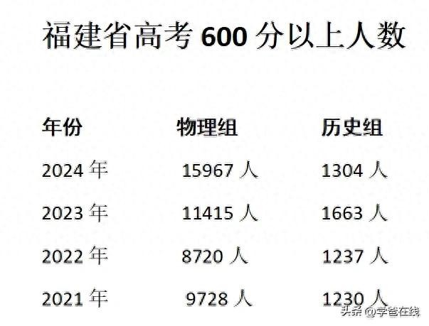学爸查看了下近几年福建考生600分以上人数,发现今年分化确实厉害:理科去年600分,全省有11000多人,今年接近16000人了;而文科去年600分有1663人,今年降至1304人。要知道,今年福建高考人数比去年多了1万。