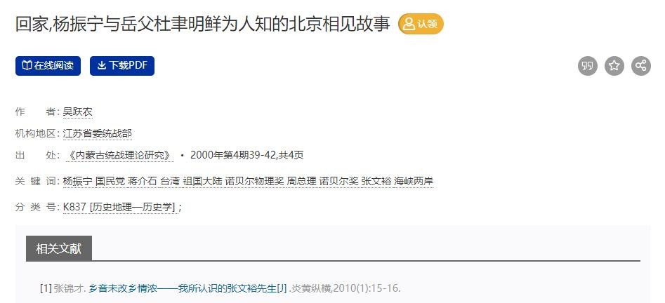 参考资料:[1]吴跃农.回家,杨振宁与岳父杜聿明鲜为人知的北京相见故事[J].内蒙古统战理论研究,2000(4):39-42
