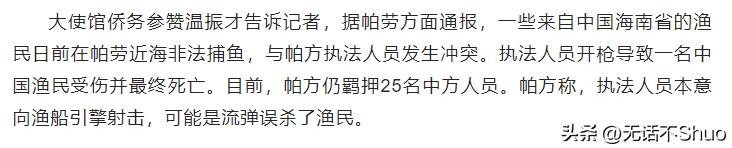 具体事情的经过我们无从得知,而且这也只是帕劳单方面的说辞,但是,被扣押的渔民和被枪击的渔民是无辜的。