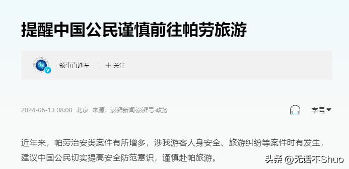 现在他们拒绝中国游客进入,无疑是在自断后路,我们当然也不甘示弱,随即发布了让国人提高安全防范意识,谨慎选择前往帕劳旅游的公告。