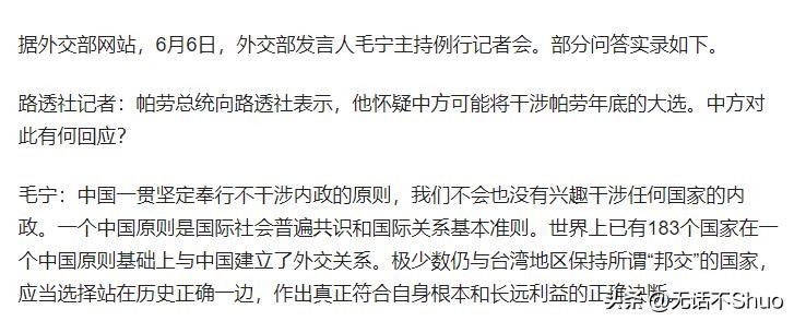 因为我国一贯奉行的都是不干涉内政的原则,外交部的毛宁也回应说,我们没有兴趣干涉任何国家的内政。