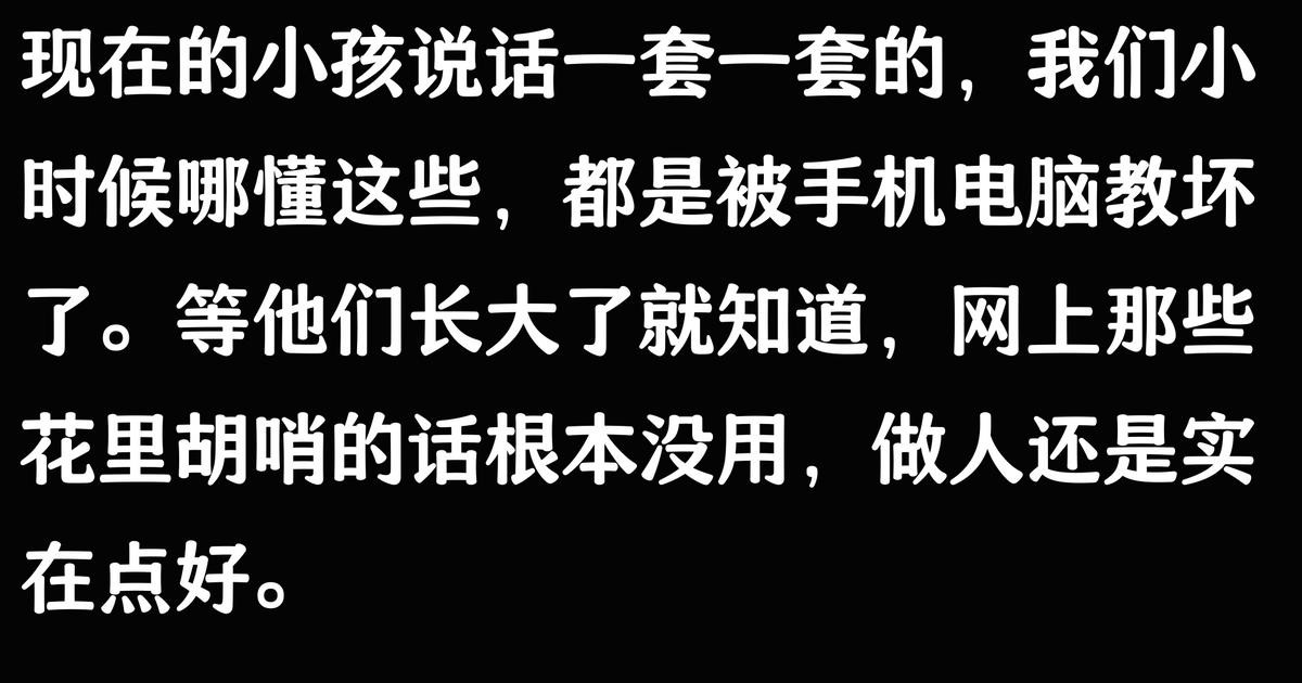 现在的孩子确实不一样 从小接触网络 语言表达比我们那会儿成熟多了 我女儿才上小学 说话一套一套的 有时候我都接不上话 不过这也挺好 说明他们思维活跃 适应能力强 关键是要引导他们正确使用这些网络语言 不能光图好玩 还是要培养规范表达的能力